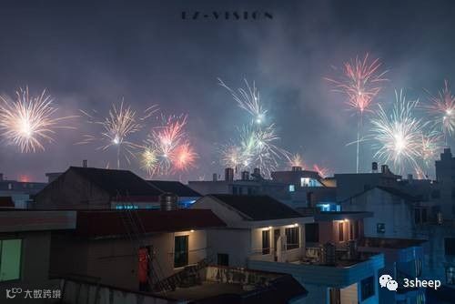 我站在西边的屋顶上看烟花,看到的景象与站在我家西边屋顶上看到的景象相似。