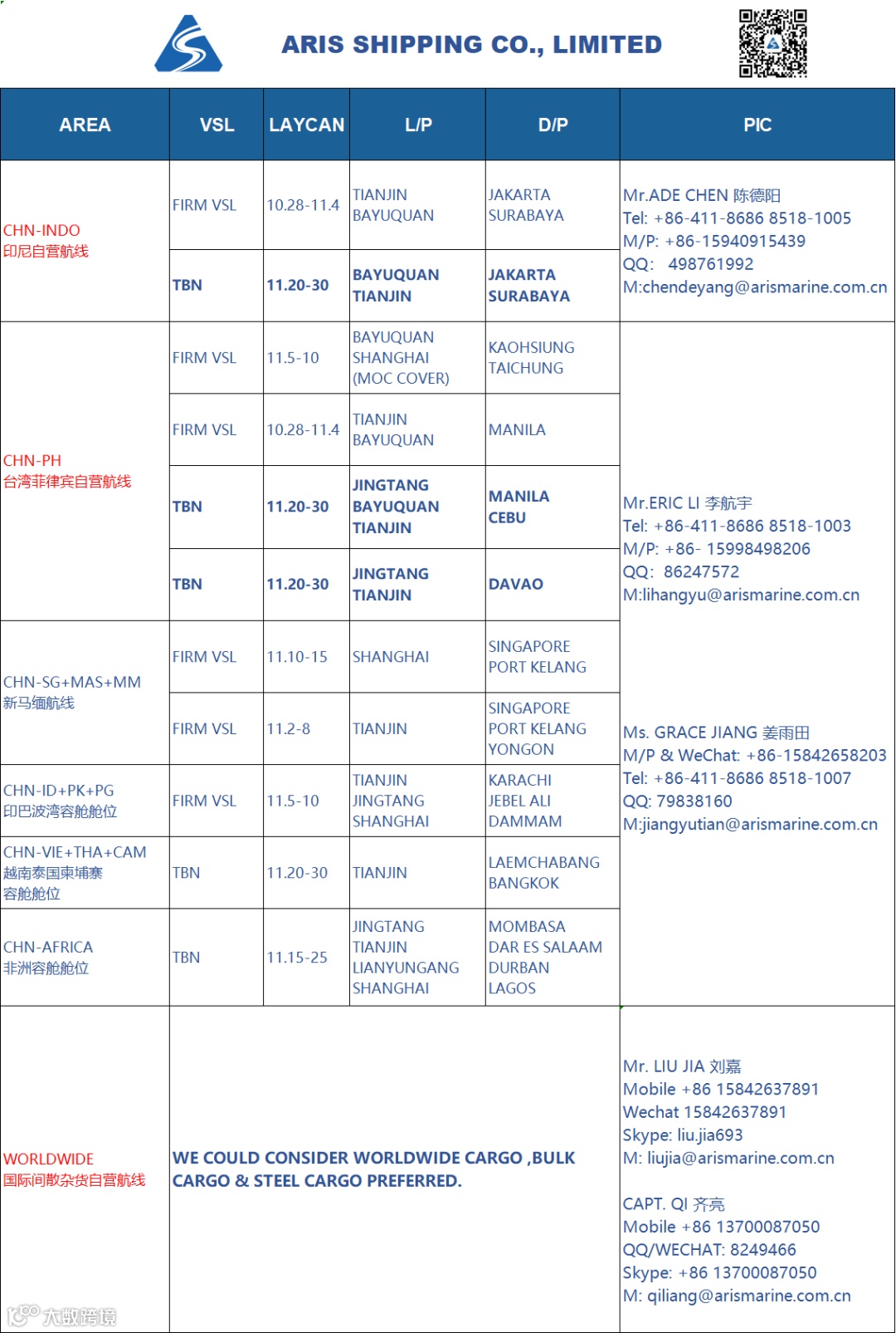 京唐+鲅鱼圈+天津~马尼拉+宿务