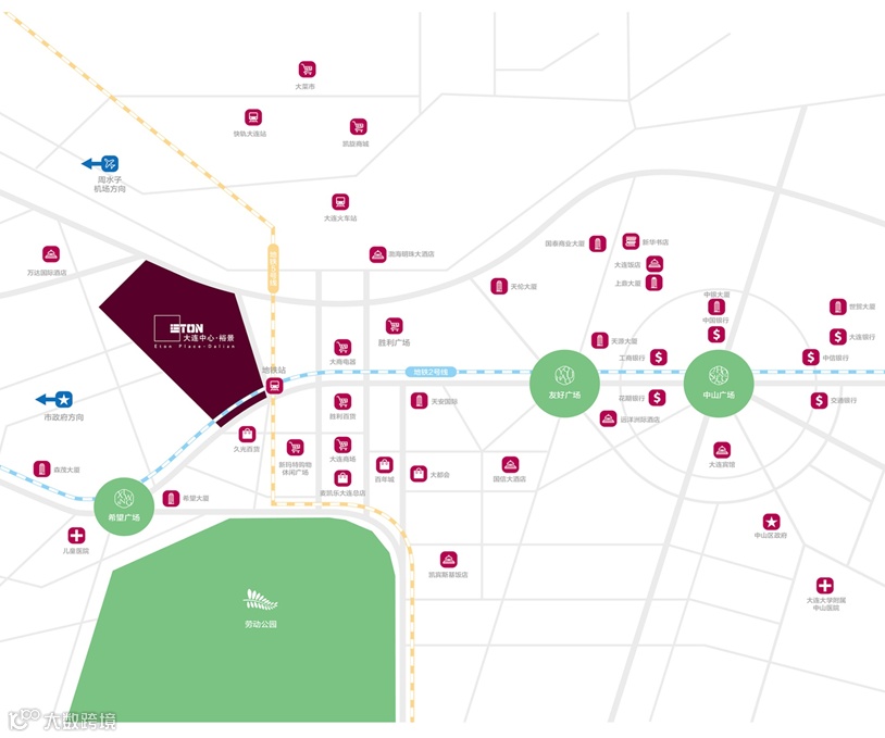启航海运办公室位于大连核心商圈–青泥洼桥附近的大连中心·裕景,完整地址: