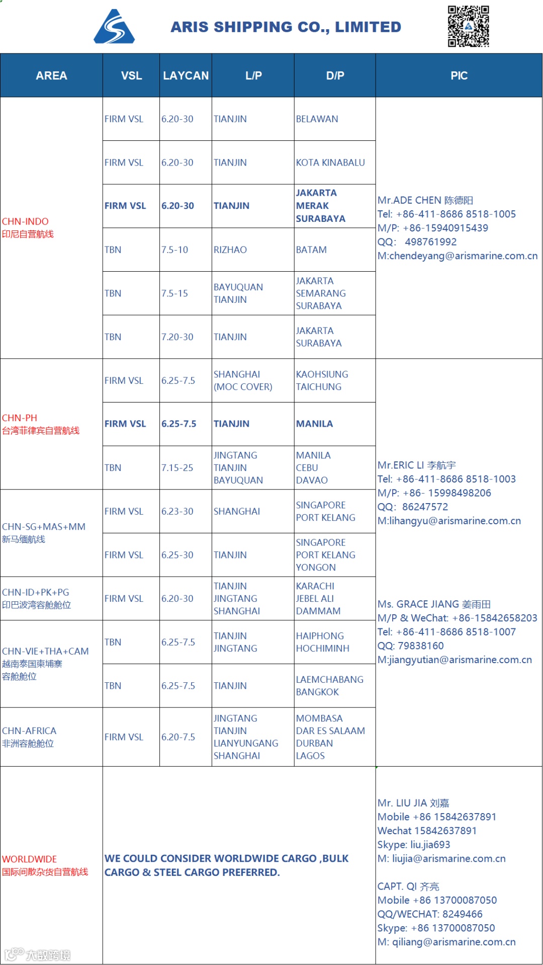 Mr. Liu Jia 刘嘉 货运经理