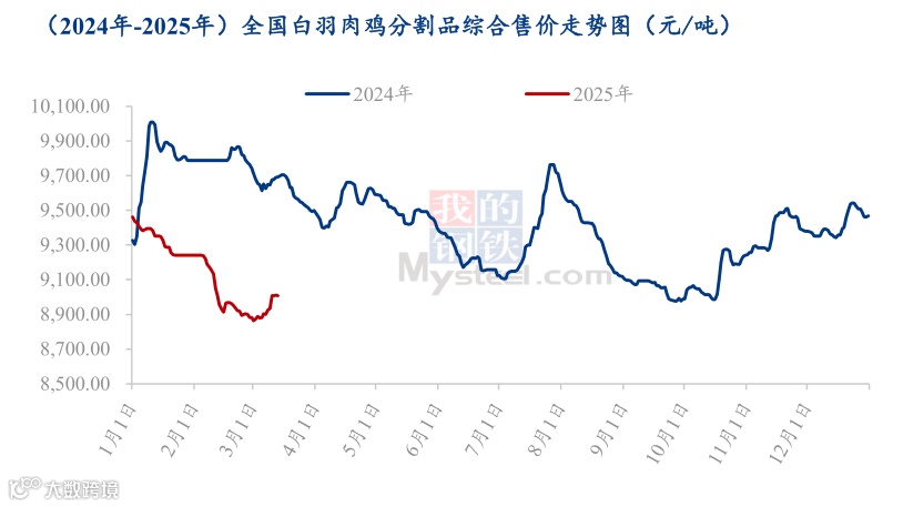 需求角度看,经销端、食品厂始终受限于自身出货慢,接货意愿差,因此工厂出货始终不佳。综上所述,预计分割品综合售价稳中试探上为主,或有 50.00-300.00 元/吨的涨幅空间,主流或在 8850.00-8950.00 元/吨的区间内波动。