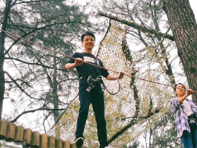 这个网,会不会结实呢?会吧……放心,你要是卡住了,我们会为你呐喊助威的。
