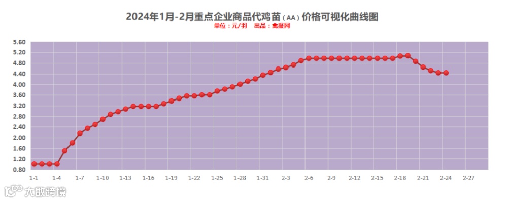 大厂报价山东暂稳,东北暂稳,总体跌幅收窄;中小厂报价局部仍显弱继续下跌态势。年后伊始鸡苗价格已涨至高位,超过预期;年后毛鸡价格向上动力和支撑仍不明显;苗高毛鸡弱,市场价格风险极大,养殖端补栏需求受到抑制;当前,多个苗厂鸡苗计划已连续明显趋慢,这两三天多地都已经有退计划情况,再加上后面几天山东暴雪天气等因素影响运输和补栏,在报价基础上实际成交仍有议价情况。