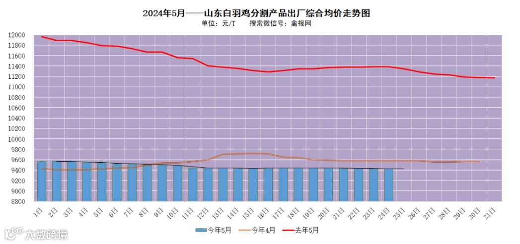 21周本周分割品价格区域性差异明显,从山东产区看,屠企在产品底部企稳价格,以改善走货困境;从东北产区看,鸡源不足毛鸡涨价使得分割品价格整体小幅上涨,并拉动均价走高。自周一批发市场走货不及预期且后期没有明显支撑涨价的因素,下游经销商对本周行情并不乐观,拿货操作一直相对谨慎。主要还是以议价发货为主,各家以加快出货为核心目标,多点库存压力呈现增加态势,局部有爆库情况,多点有控量限杀停产情况。实际发货针对批量性订单多家都表示可议价,有让利空间,主要还是集中在中规格棒腿、翅中L/M、单冻翅尖、长爪类、单冻鸡胗以及鸡心等。