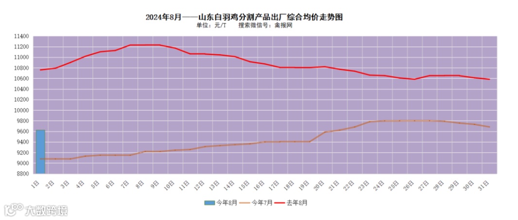 山东地区出厂报价总体继续显弱走跌态势。具体来看,局部"明面"继续下调不是很明显,但实际发货继续保持幅度较大的议价状态;局部多个单品报价直接继续明显下跌,一般幅度200-500元/T,主要是棒腿类、翅中L、翅根L、长爪类等。局部凤爪类跌幅仍较大,调整幅度达800-1000元/T。超涨单品随着情绪支撑的减弱回调也实属必然,但是毛鸡价格以及8月需求的一些利好因素对产品报价仍有较强程度的支撑。但是距离开学利好和食品厂备货等仍有一定时间差,短期刺激点不足。随着近期的消化,一批经销商进入中低位库存状态,二三批高价库存待消化,市场新一轮备货条件酝酿初现。下周预计向下震荡为主。