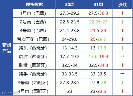 周内主产国中巴西猪价下跌,美国猪价上涨,中国及欧盟猪价偏稳运行。整体来看进口猪肉交易价格小跌,交易量正常,不过近日部分地区市场成交情绪再度转好。