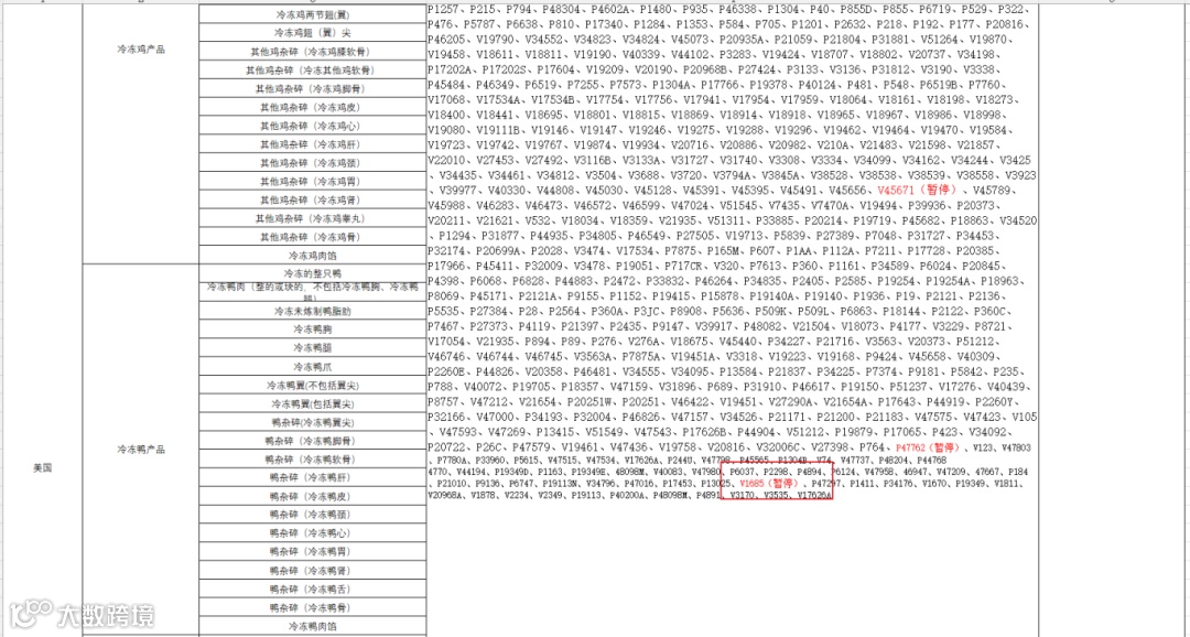 暂停美国注册编号为V1685企业对华出口冷冻鸡、鸭和鹅等产品的资质;