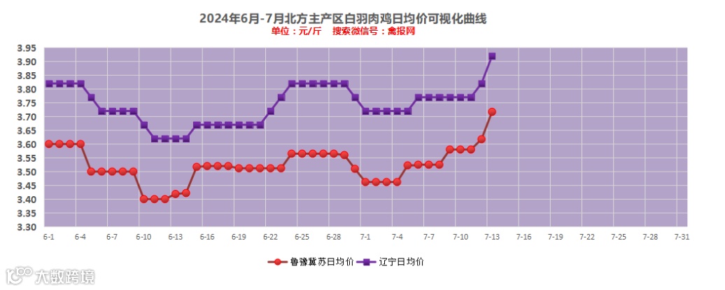 山东地区:1、统一明面报价上涨1毛左右,社会鸡和大鸡少,潍坊滨州临沂等地收购在基础报价上仍有明显加价,幅度2-5分,主流报价区间基本在3.70-3.75元/斤范围;2、看毛鸡价格上涨,养户惜售情绪增强、屠宰收购有压力,加上当期核算宰杀利润亏钱,地多点仍有明显的控量停产情况;3、补栏趋向积极,当下保底合同保价大概在3.60-3.70元/斤区间。