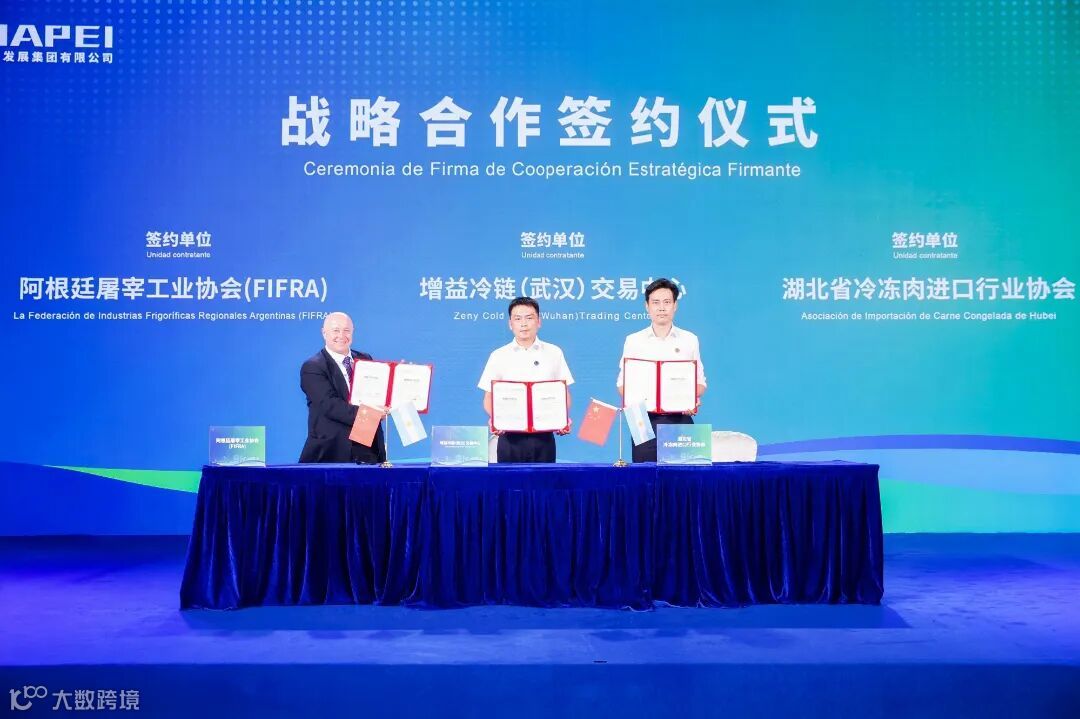 现场,阿根廷屠宰工业协会(FIFRA)、增益冷链(武汉)交易中心、湖北省冷冻肉进口行业协会三方签约,未来将在阿根廷牛肉进口贸易领域达成长期、全面的战略合作关系,共同促进中国进口肉类贸易市场的发展。