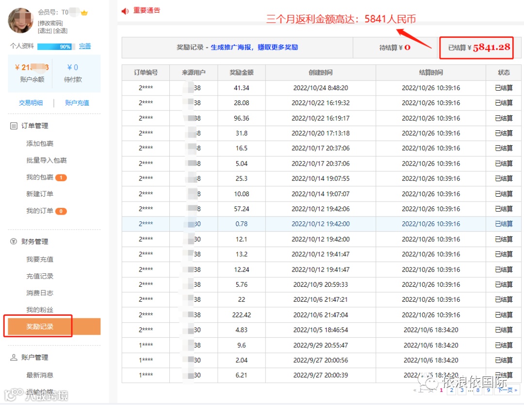 二、分享推广给你朋友注册即可享受,你朋友【每次发货运费金额的3%的运费佣金】,自动到你的会员账户,一次分享永久有效!
