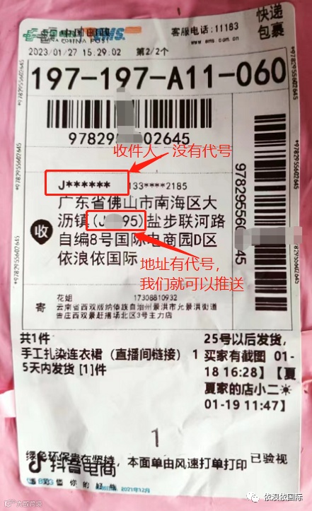 原本收件人:是有客户的代号的,已经被电商平台屏蔽,(如果只有收件人有代号信息,被屏蔽了,我们就无法推送)