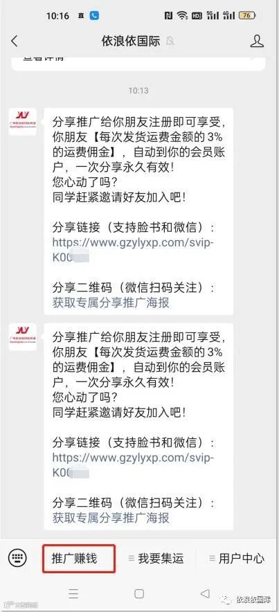 二、分享推广给你朋友注册即可享受,你朋友【每次发货运费金额的3%的运费佣金】,自动到你的会员账户,一次分享永久有效!