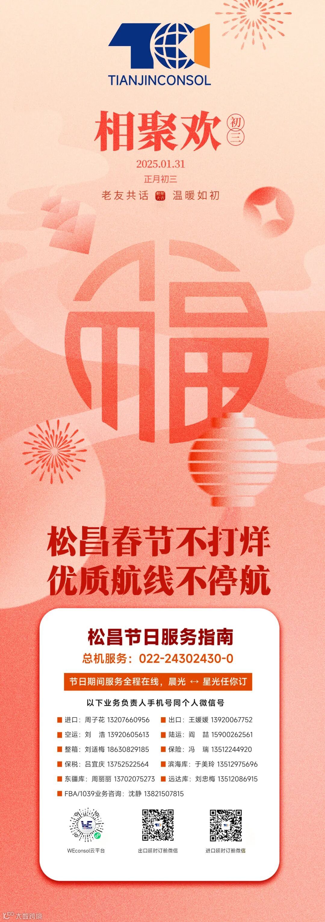 松昌集团一直以来都致力于为客户提供全方位高品质的综合物流服务,“春节不打烊,服务不停航”不仅仅是一句口号,更是全体松昌人对客户的庄严承诺。正是有了这些坚守岗位的同事们,松昌集团才能在春节期间依然保持高效、稳定的运营,为客户的业务发展提供有力支持。 我们在岗位上相聚,共话松昌发展的新篇章!