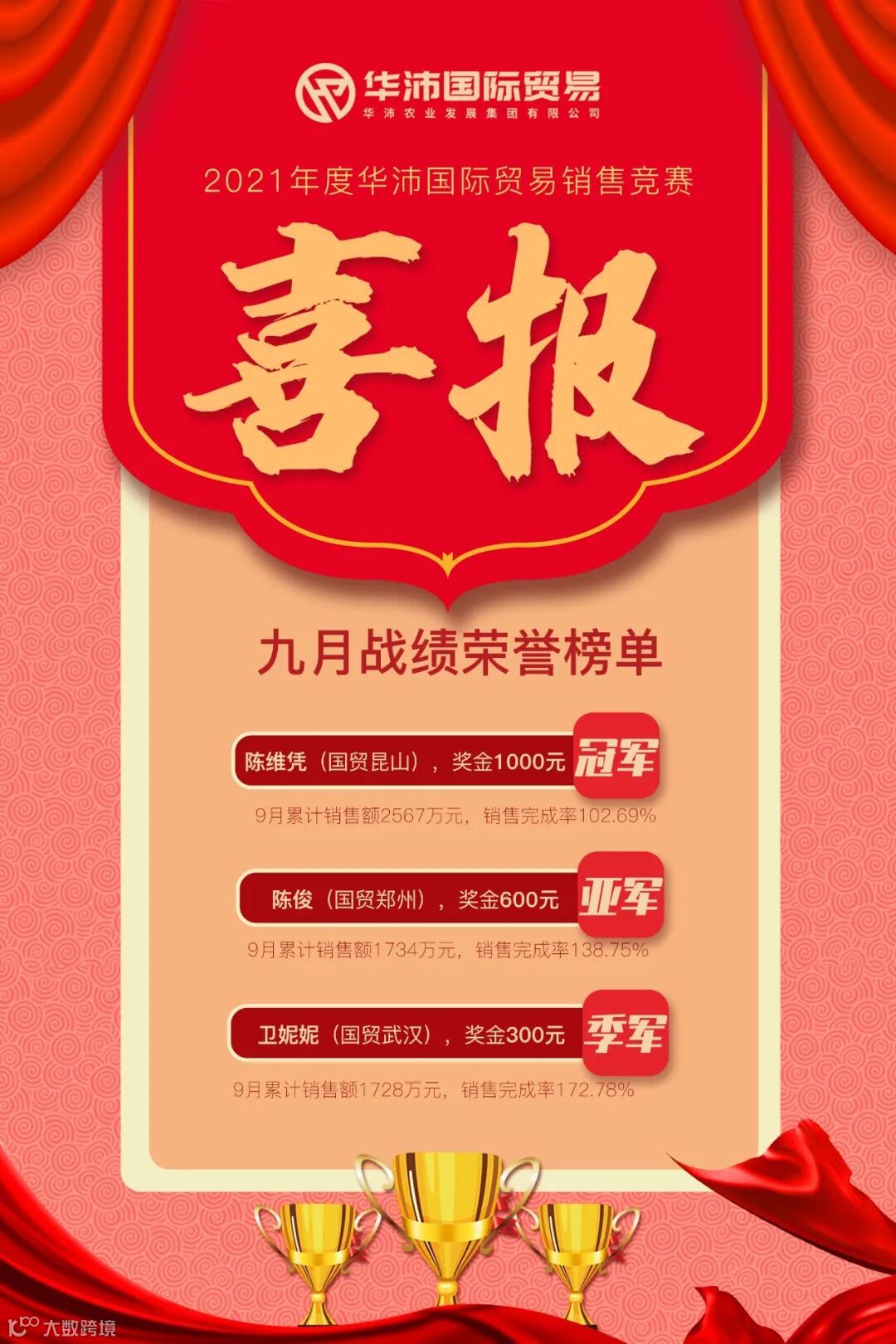 自此,华沛国际贸易9月销售竞赛荣誉榜单完美揭晓!