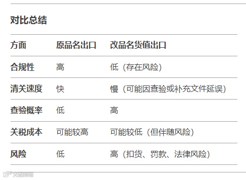 原品名出口通常更容易且风险更低,而改品名出口则需谨慎操作,避免因不合规导致清关失败或额外损失。