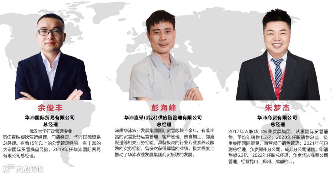 华沛商贸有限公司隶属华沛农业发展集团,是旗下全资子公司,成立于2021年07月26日,注册资金38200万元,法定代表人为彭浩,后勤团队共享集团资源,其销售团队与全球贸易团队共约200人,总部位于武汉市中央文化区万达尊B座,是一家经营肉类进口、全国批发分销为主的规模型商贸企业,致力于为消费者提供安全健康的多样化高端动物蛋白产品,并链通上下游产业链,助力中国农产品品牌升级。