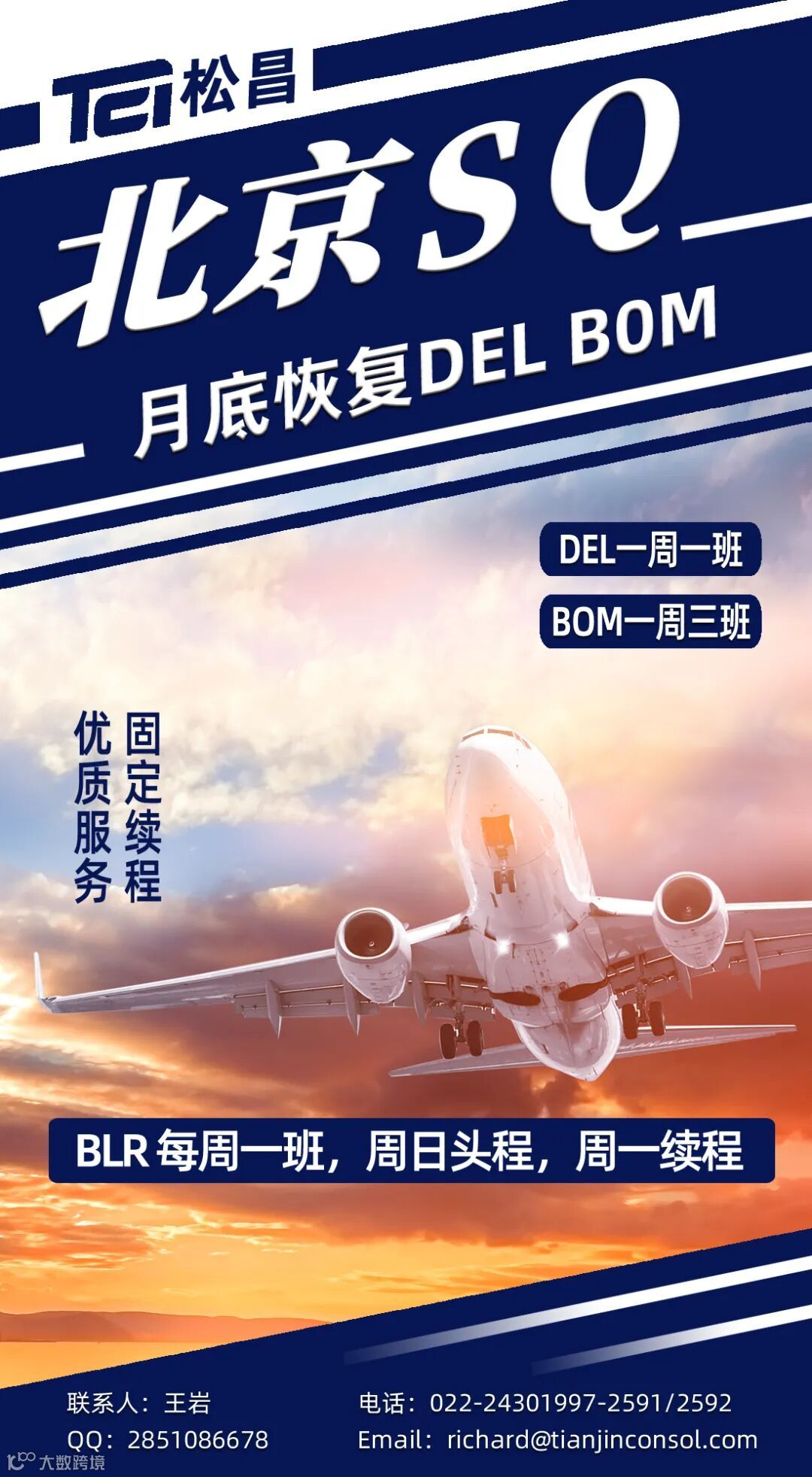 【承载梦想 松昌起航】北京SQ月底恢复DEL BOM