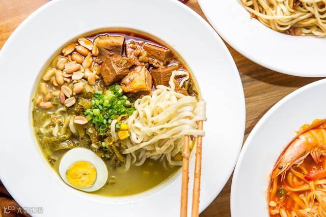 在小巷见面,每天都会以老鸡、老鸭、大骨熬制四个小时以上,如此出来的汤才会被用到各种口味的面里。