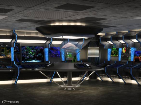 走进海底空间实验室,一眼就看到中央的虚拟浮空台,就像飞船空间站当中的控制台。按一下上面的8个按钮,3D立体全息海洋生物影像就会轮番出现在浮空台上,它们旋转飞舞着,让周围游客在任何一个角度都能大饱眼福。