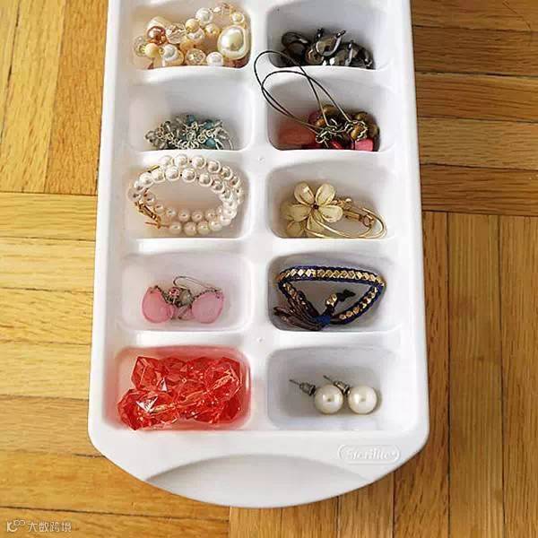 冰格除了制冰,还能当做各类小首饰的收纳盒。