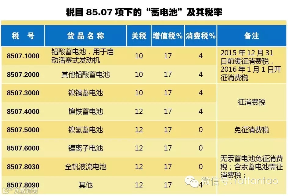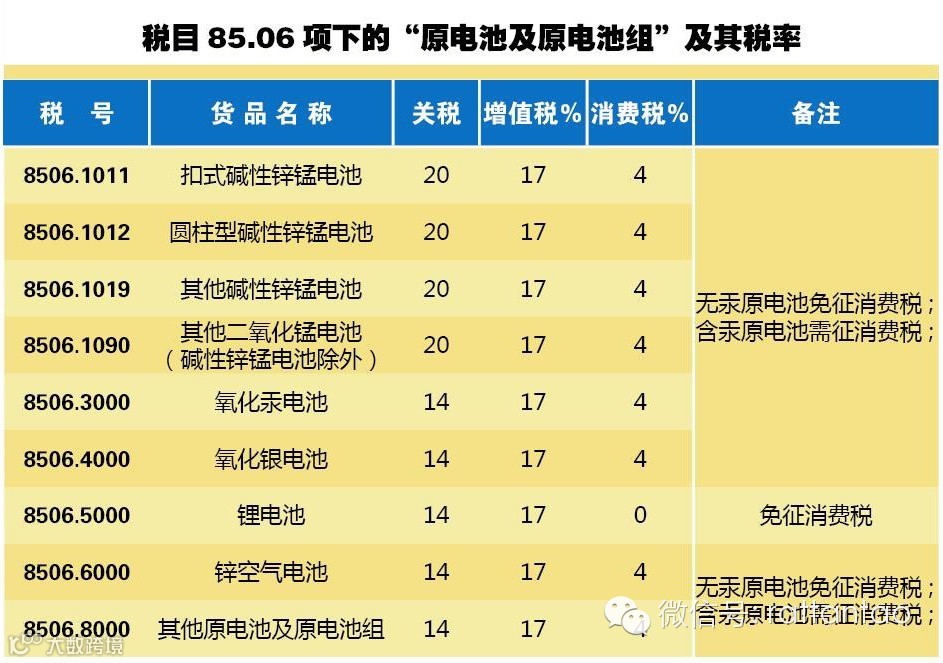 根据《公告》,我国对税目8506和8507项下部分电池开征进口消费税。其具体规定如下: