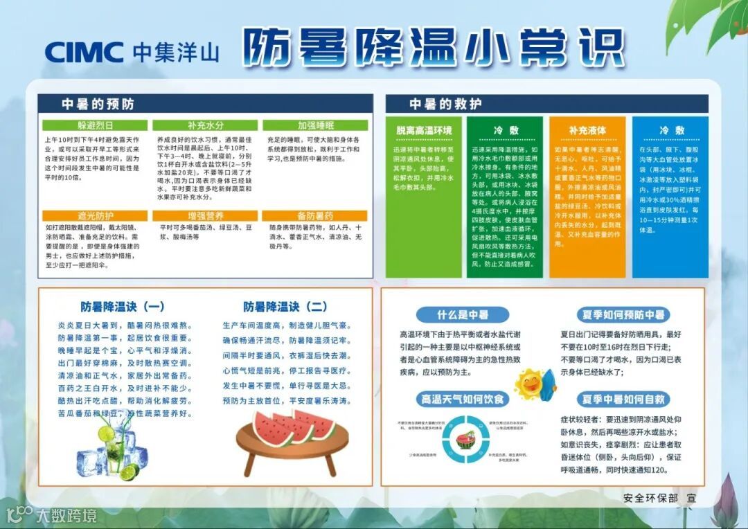 公司配备发放藿香正气水、人丹、风油精等应急药物与盐汽水、王老吉、夏季礼包等消暑用品,食堂熬制绿豆汤,苦瓜水、大麦茶等清凉饮品,在菜肴搭配上,注重营养均衡,多方面缓解高温带给员工的不适感,提升其身体抵抗力。