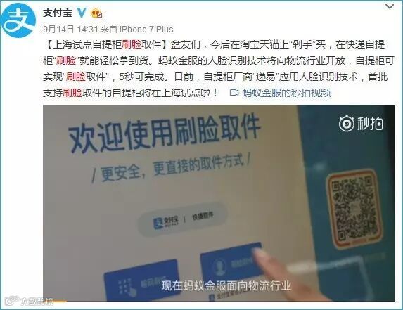 支付宝已经在上海试点“刷脸取件”!