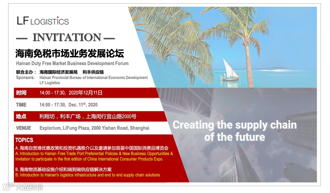 在本次论坛上,你可以围绕海南自由贸易港特惠政策、免税市场分析和品牌定位等内容,与有前瞻思维的专家和行业领袖开展深刻对话,也可以更近距离地了解利丰供应链的架构体系和端到端解决方案。