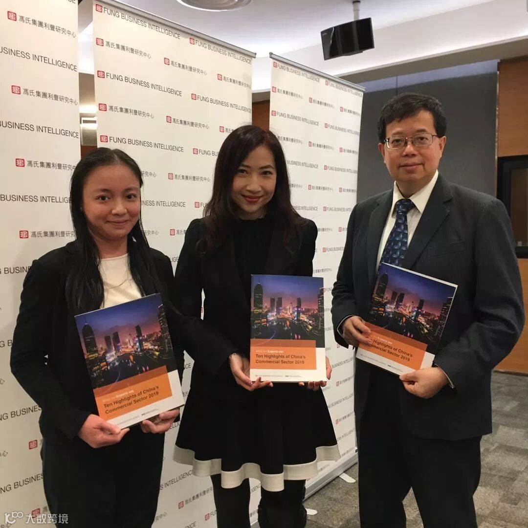 《中国商业十大热点展望》报告发布会,从左至右分别为:利丰研究中心研究经理陈皓欣,利丰研究中心副总裁林诗慧、利丰研究中心董事总经理张家敏