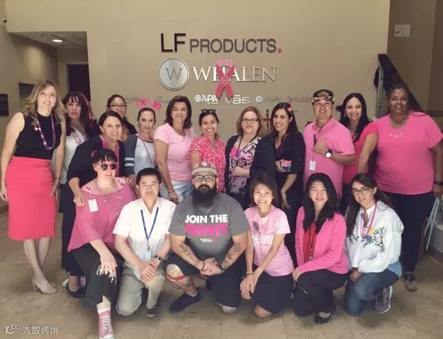 我们举办了粉红丝带慈善跑,还把办公室装点成粉红色。