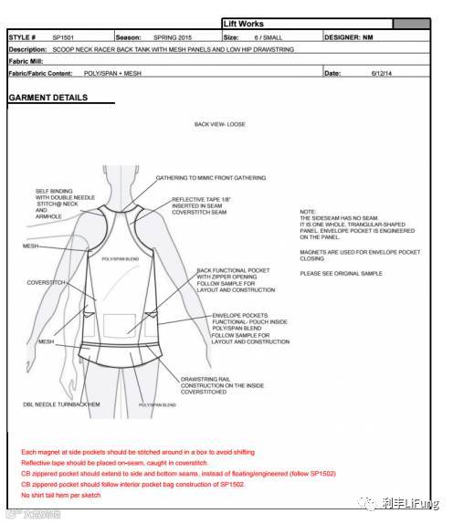 在制作一件产品或样品前,设计师需要与生产商清楚地沟通所有关于该产品的组成部分和详细资料,包括尺寸、材料、颜色、装饰、硬件、等级和标签等等,这些资料和所有关于这个产品设计的关键地方都需要详细地描述在一张纸上,我们称它为技术包。技术包包含的资料越详细,制作出来的产品或样品便越准确。