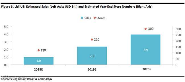 我们认为Lidl会按照1-2-4的结构在美国进行扩张。也就是,2018年全美的营收突破10亿美元(1 billlion),2019突破20亿(2 billion),2020年突破40亿(4 billion)。