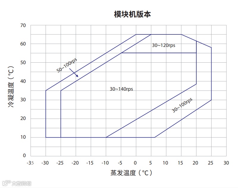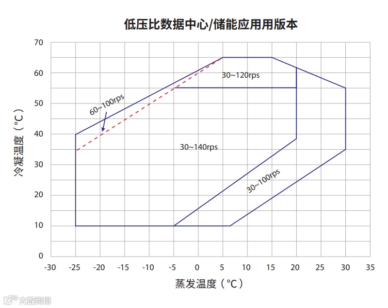 VCH115变频涡旋压缩机单台制冷量达到25冷吨,领先市场同类产品。同时,转速调节范围进一步扩展至30-140rps,能够为客户带来更大的节能效益,而且可以轻松应对数据中心机房空调、储能热管理,模块机以及热泵的不同应用。同时,VCH115运行范围更加宽广,能够适应不同应用环境的挑战,进一步提升系统可靠性。