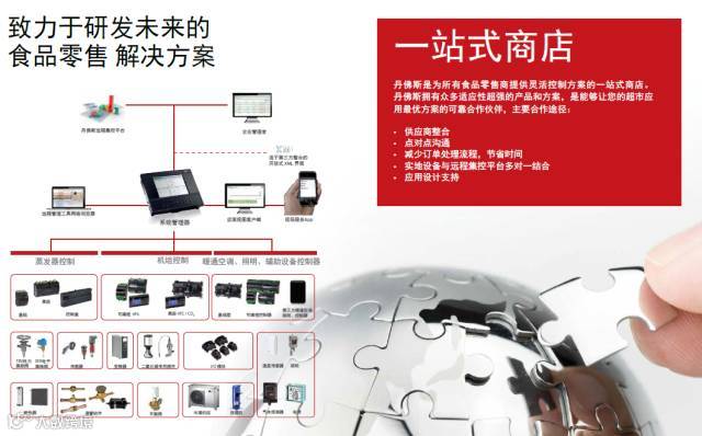 丹佛斯通过ADAP-KOOL®方案与全球食品零售行业建立了超过30年的合作关系,并且在制冷及暖通空调行业有着80多年的研发经验,这些都是丹佛斯智能商超解决方案的坚实基础。智能商超解决方案通过制冷设备、暖通空调、照明和其他集中控制的应用,改善食品安全,降低能源支出,让超市和食品安全和能效节约实现巨大突破。