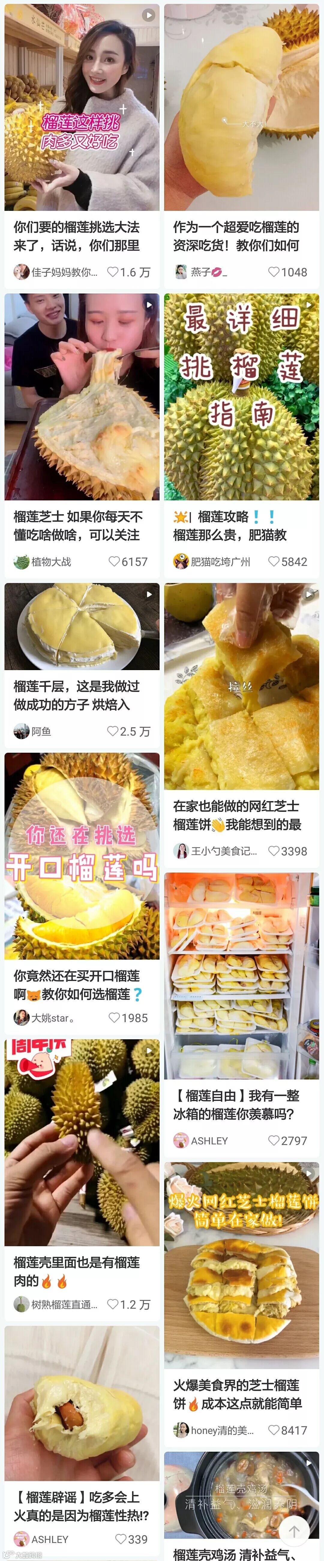 催生了一群热衷榴莲的达人,他们对榴莲的品种和特性信手拈来,能深入浅出的解释金枕头、青尼、长柄、卡伦、猫山王、金凤、XO、干尧、红虾等各种榴莲的不同区别。对榴莲的吃法更是娓娓道来,芝士榴莲、榴莲酥、榴莲千层、榴莲披萨、榴莲冰激凌的烹饪窍门可以脱口而出。