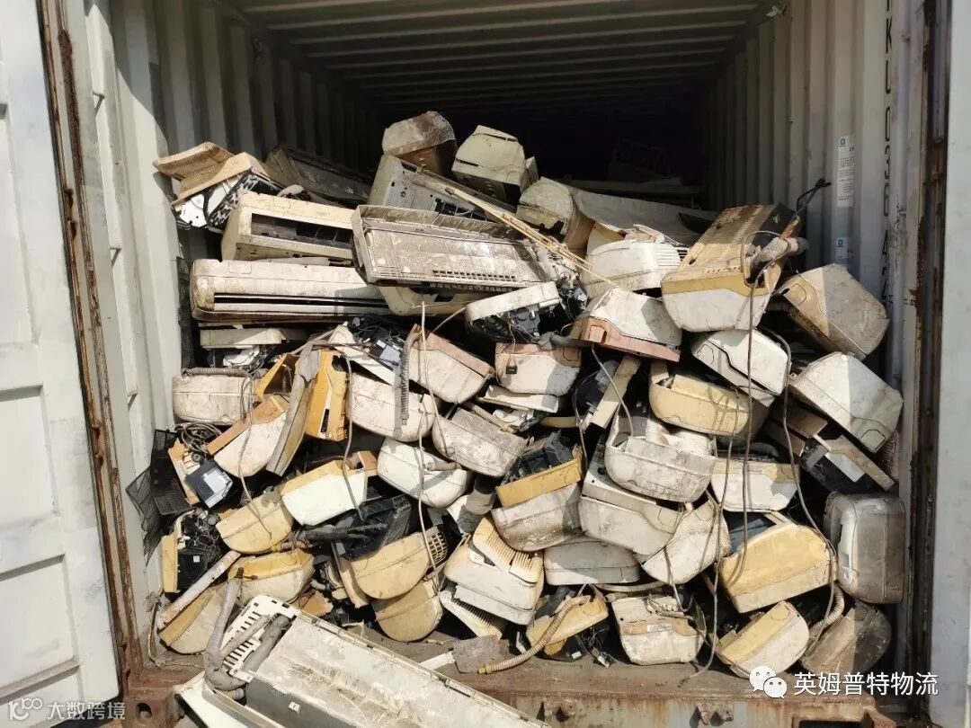 集装箱打开后,本应是空无一物的集装箱内装满了废空调(包括室内挂机、室外机及空调柜机),空调外壳因年代久远已经发黄,整个集装箱散发出刺鼻的气味。经第三方专业机构鉴定,确定该批物品为废弃家用电器电子产品。