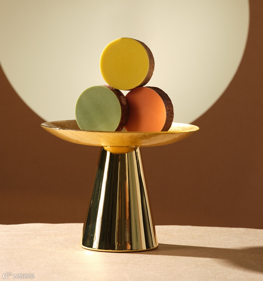 以天然萝卜、苹果和黑加仑着色的牛奶巧克力薄片为外壳
