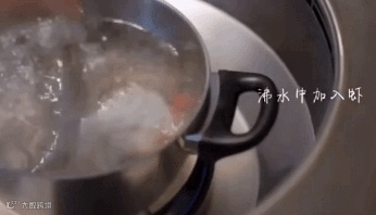 接着如果你选择清水煮虾,记住要开水下锅,待到再开锅1-2分钟就好了。可以看到虾身全部变成饱满的橙红色,就可以出锅了。