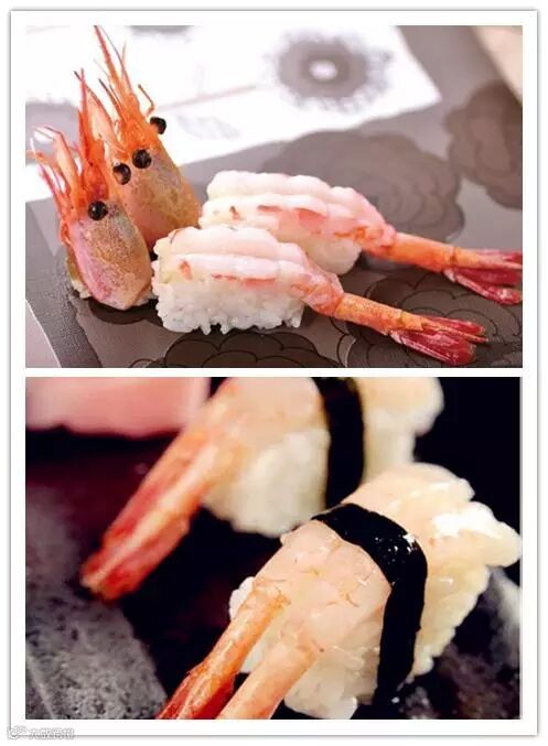 日料里非常喜欢用北极虾,一只只去掉虾壳的北极虾仁娇俏地趴在醋饭团上,粉红的色泽看起来格外诱人,再蘸上一点儿酱油和芥末,挤上一点儿柠檬汁,刚一口塞进嘴里,还来不及细细品尝,筷子是不是就已经等不及夹起了下一块寿司啦!