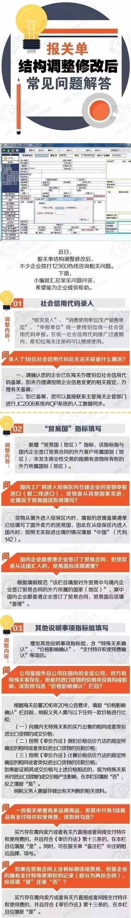 近日, 报关单结构调整修改后,不少企业咨询相关问题。小编汇总一些常见问题的解答,希望能为企业提供帮助哦,请戳大图!