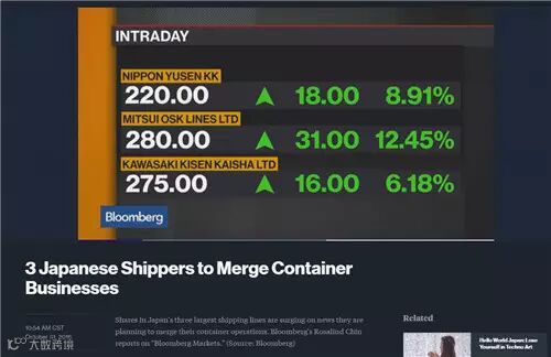 根据彭博社报道: 川崎汽船株式会社有限公司(K-LINE)、商船三井有限公司(MOL)和日本邮船株式会社(NYK)在今天召开的董事会上,刚刚达成一致协议,协议内容如下:在当局监管部门的批准下,建立一个新的合资公司,整合三家企业的除日本外的全球集装箱业务。