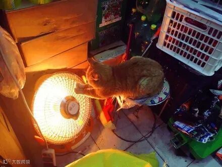 抄着手蹲在电暖器前面