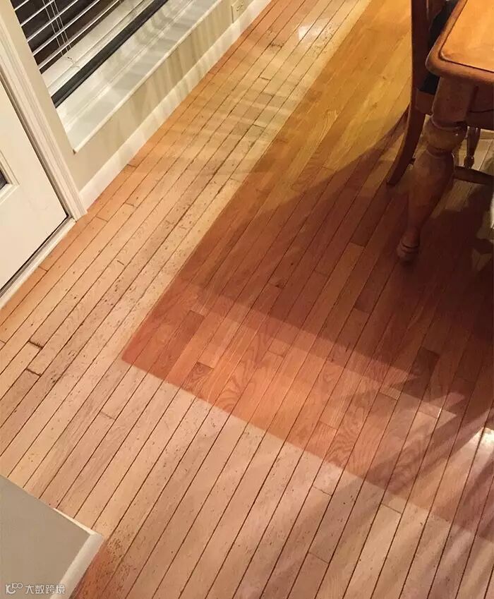 颜色深的是原本铺设地毯的部分,而没有铺设的硬木地板经过阳光照射,颜色较浅
