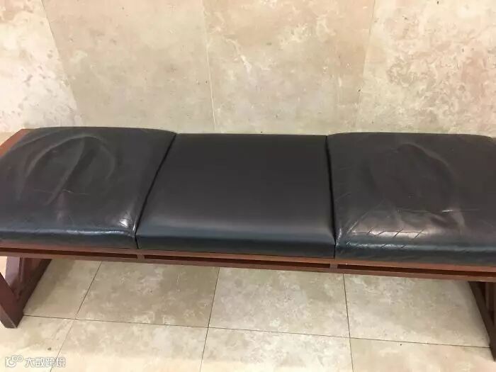 这个银行铺的是大理石地板,柜台前的位置由于多年来办业务的人,凹陷下去