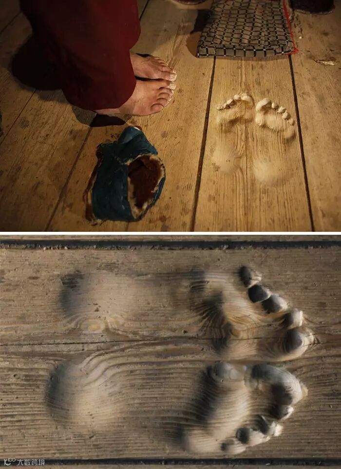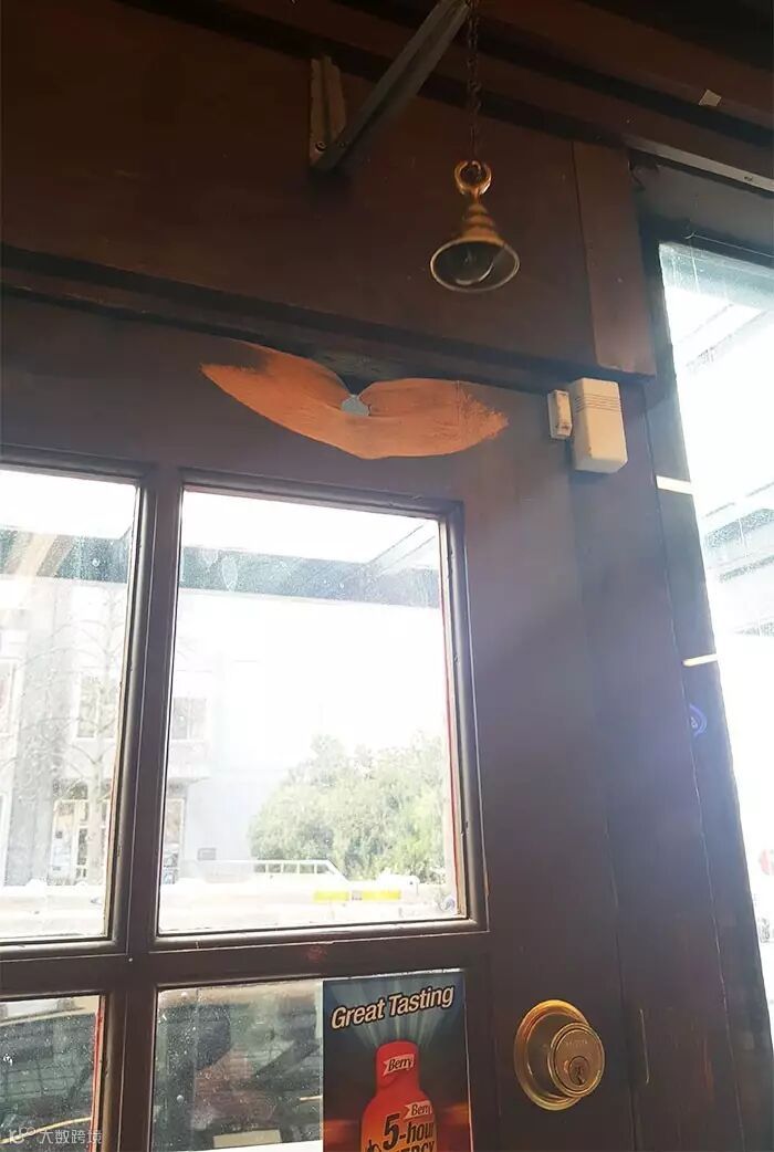 每次开门都会碰到铃铛,门上留下了深深的印记