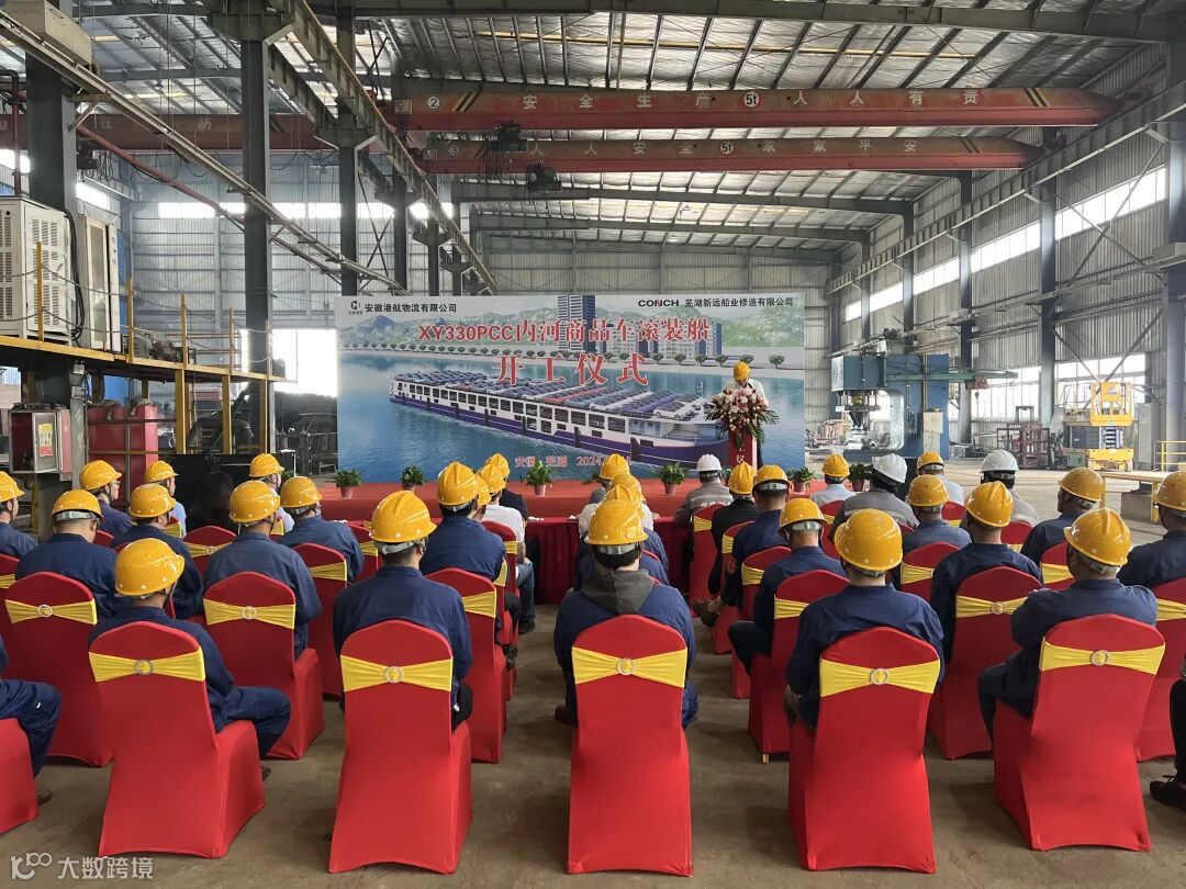 5月11日上午,港航物流公司“330车”内河商品车滚装船舶开工仪式在安徽芜湖举行。