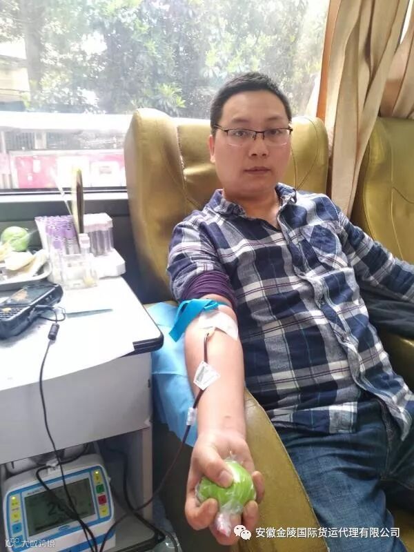 3月18日,由瑶海森海社区组织的辖区居民及企业参加的无偿献血活动中,在安徽金陵国际货运代理有限公司党支部、共青团和工会的大力倡导下,工会主席王奔同志积极响应上级组织号召,为爱捋袖,爱心献社会,热心助健康。