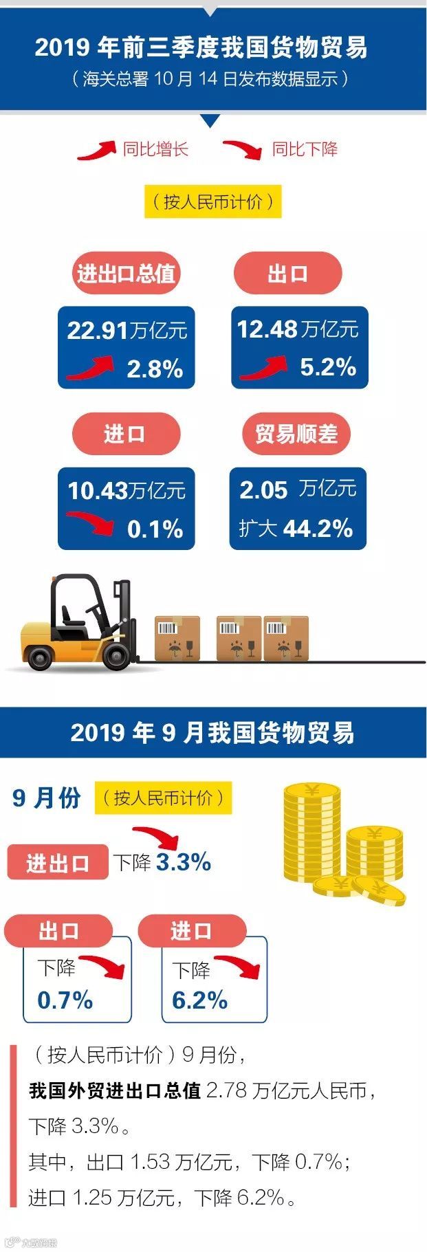 二是政策效应持续释放。去年以来,我国两次提高部分产品出口退税率,先后出台一系列自主降低关税政策,先后两次下调进口环节增值税税率,这一系列举措有效激发市场主体活力。比如,今年前三季度,我国消费品进口增长达到15.3%;有进出口记录的企业数量达到46.4万家,同比增长5.9%。持续优化营商环境,贸易便利化水平大幅提升,前三季度我国进口、出口整体通关时间较2017年分别缩短56.4%、64.7%。