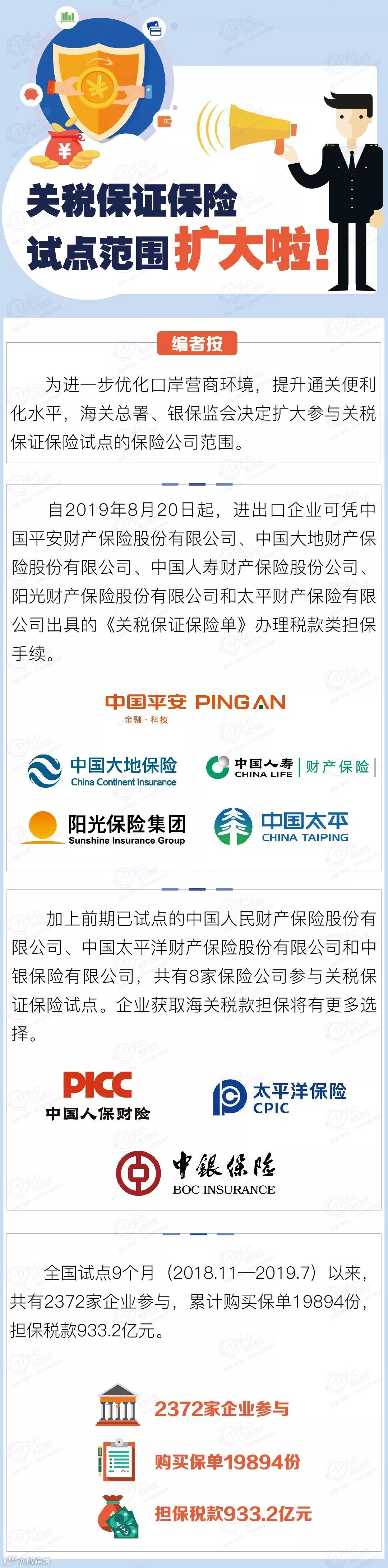 导读:关税聚焦|关税保证保险试点范围扩大啦!
