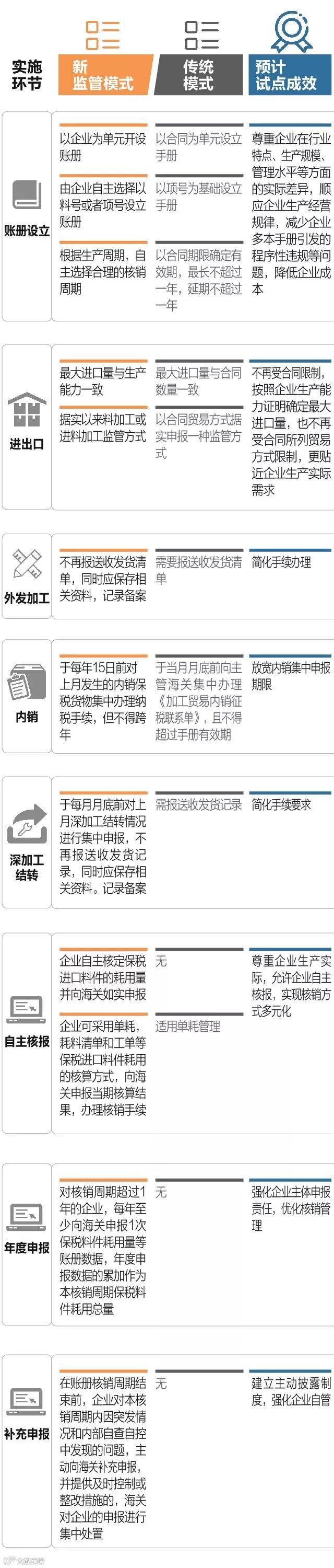 新监管模式和大家熟悉的传统的加工贸易模式相比会带来哪些变化呢?让发布君带你们来好好看一看~